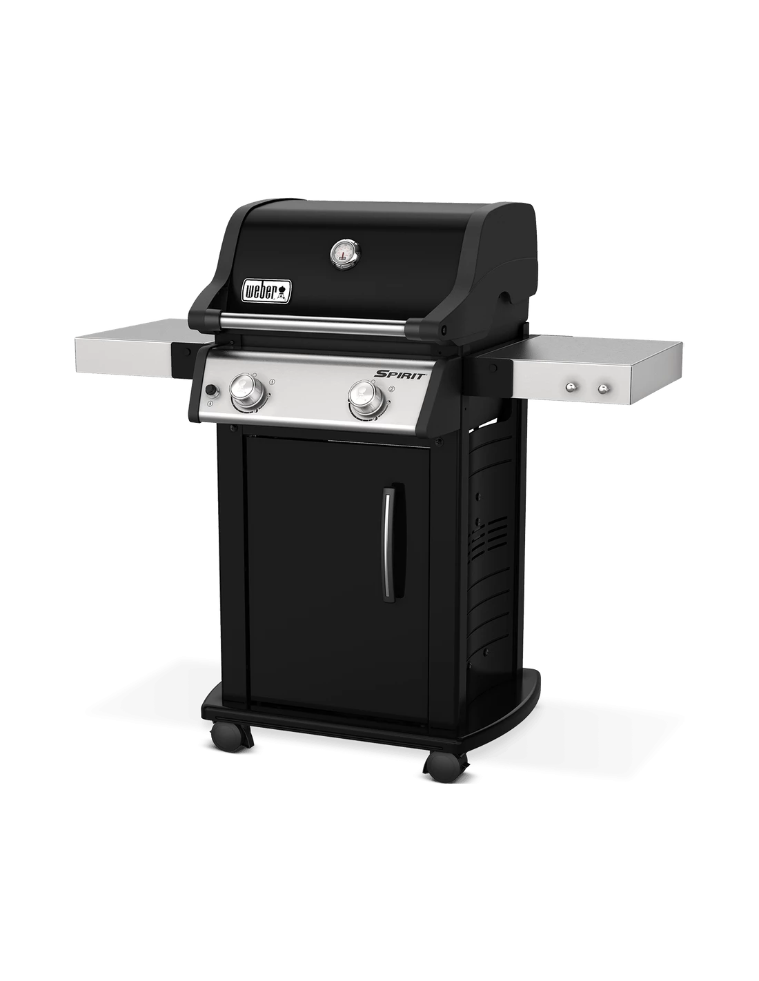 Le barbecue Ă gaz Spirit E-215 Ă deux brĂ»leurs a Ă©tĂ© conçu pour s’adapter Ă des espaces plus petits, parfait pour une terrasse ou un balcon. Il est Ă©quipĂ© de deux plans de travail rabattables pour y placer les plats de service et les Ă©pices, tandis que les crochets Ă ustensiles permettent d’avoir les ustensiles de barbecue toujours Ă portĂ©e de main.