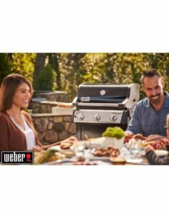 Muni de trois brûleurs, le barbecue à gaz E-315 présente une surface de cuisson généreuse et des plans de travail latéraux pratiques pour déposer vos plats de service. En accrochant votre spatule et vos pinces sur les crochets à ustensiles, tout ce dont vous avez besoin est à portée de main.