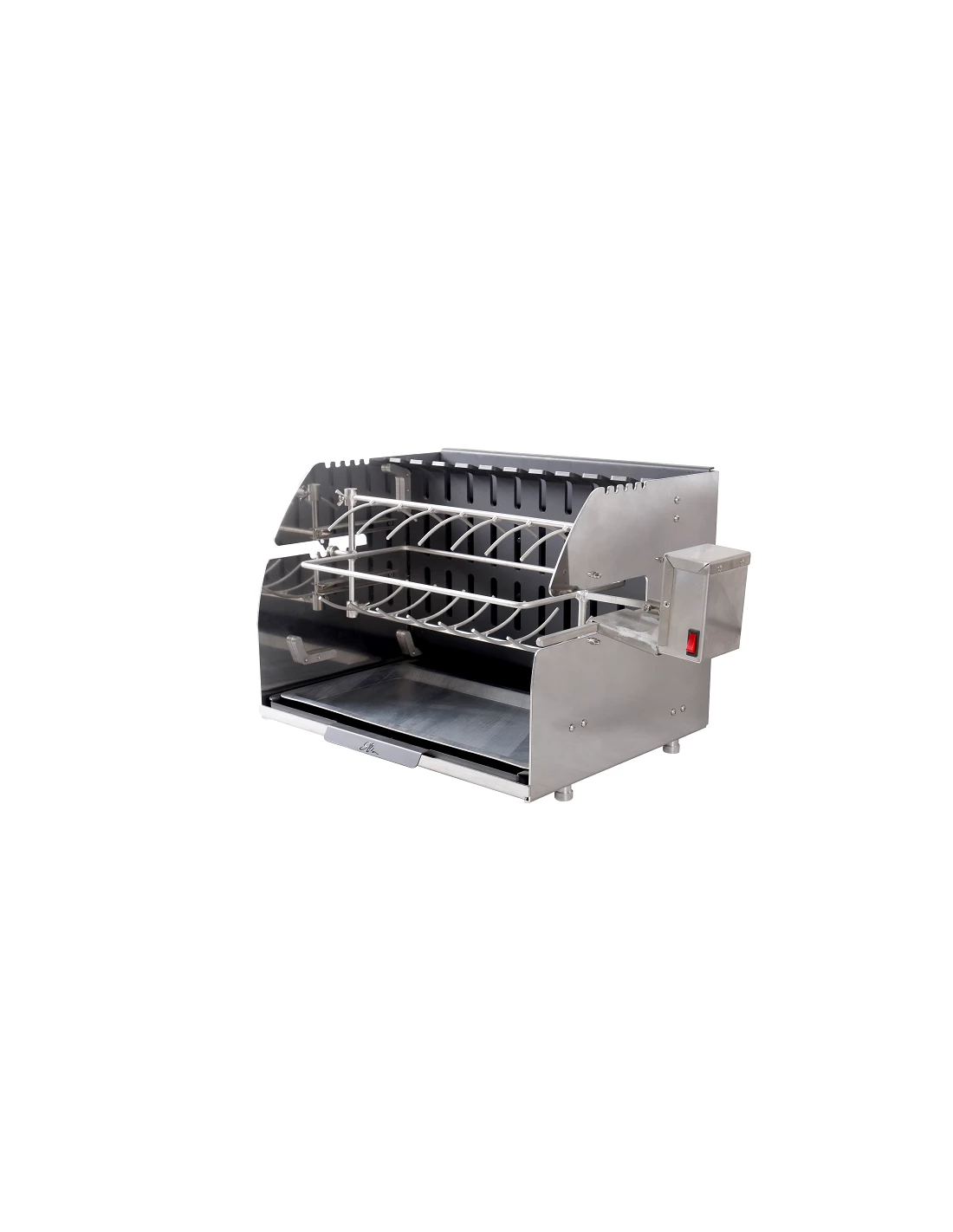 Cuisson verticale en broche Anglaise, idĂ©al pour vos poulets, rĂ´tis, coquelets, jarrets, lapins etc … jusqu’Ă 8 kg.