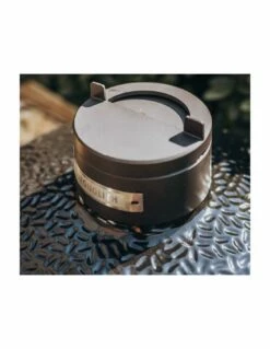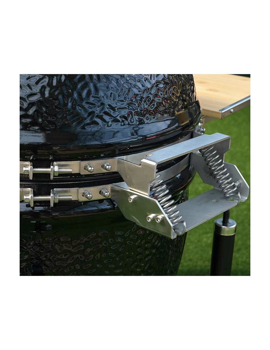 Le barbecue Monolith est spécialement conçu avec une trappe avant qui permet de placer des granulés ou du bois fumé sur le charbon sans ouvrir le couvercle du barbecue.