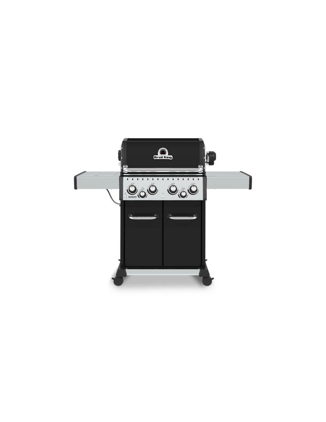 Le barbecue à gaz Baron 490 noir de Broil King offre une surface de cuisson de 4 155 cm², incluant la grille de maintien au chaud en acier inoxydable, les grilles de cuisson en fonte émaillée réversibles et la surface de cuisson de la plancha incluse.