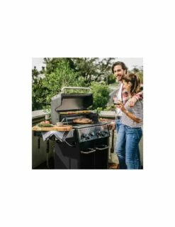 Ce modèle est également équipé d’un brûleur arrière avec Kit rôtisserie premium inclus et d’un réchaud latéral. Fourni avec tuyau de gaz NF.