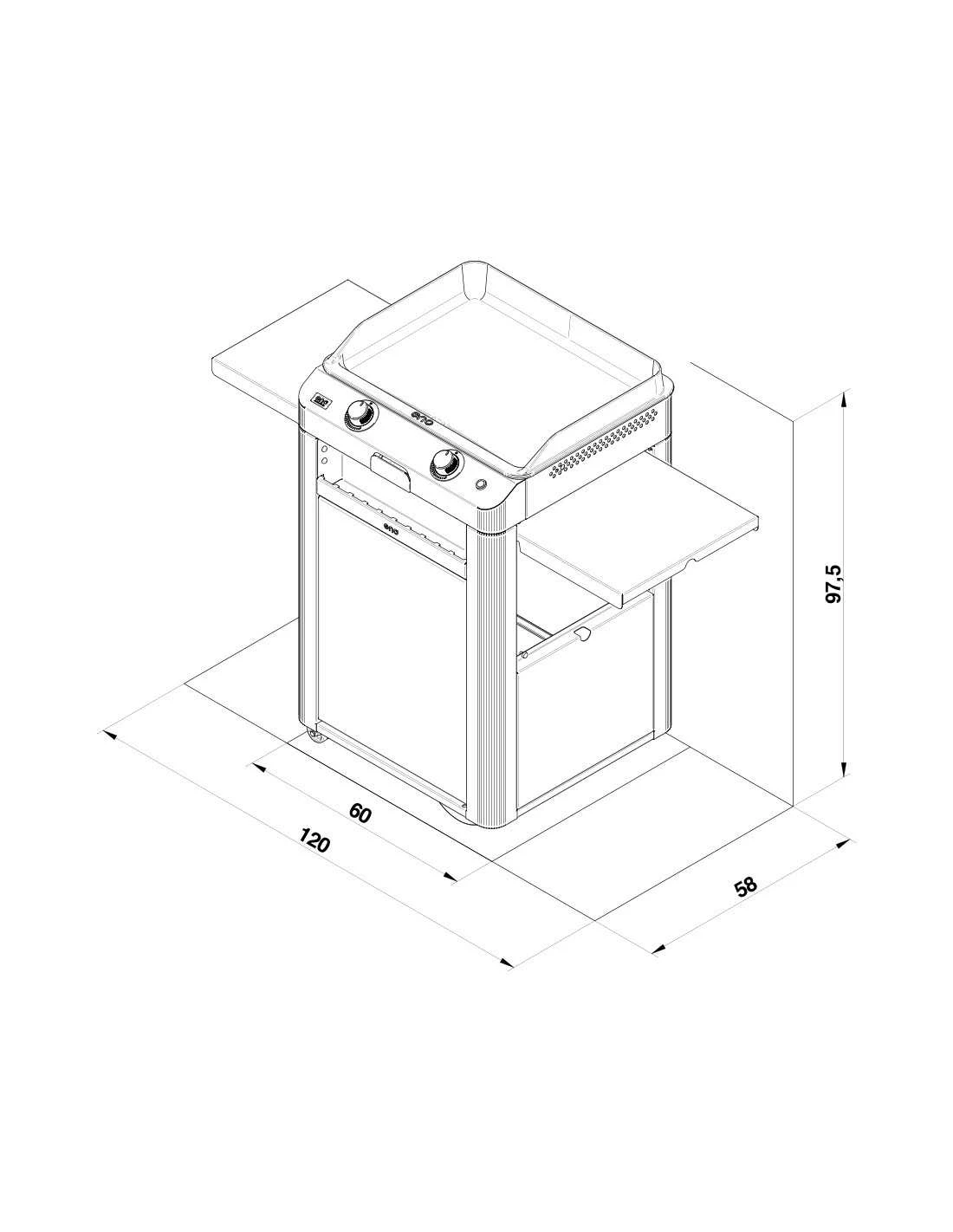 | Dimension | (H x L x P) cm : 97,5 x 120 x 58 |