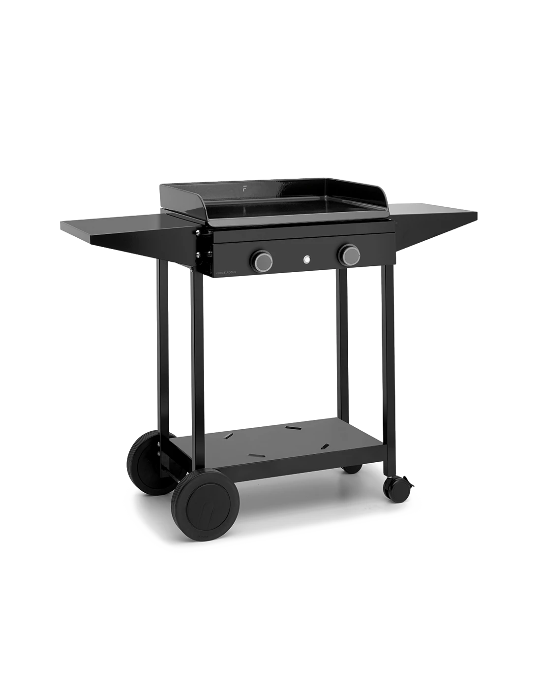 Le chariot est très pratique car des tablettes latĂ©rales sont intĂ©grĂ©es afin de servir de plan de travail. Le chariot assure une bonne stabilitĂ© de la plancha.Â
