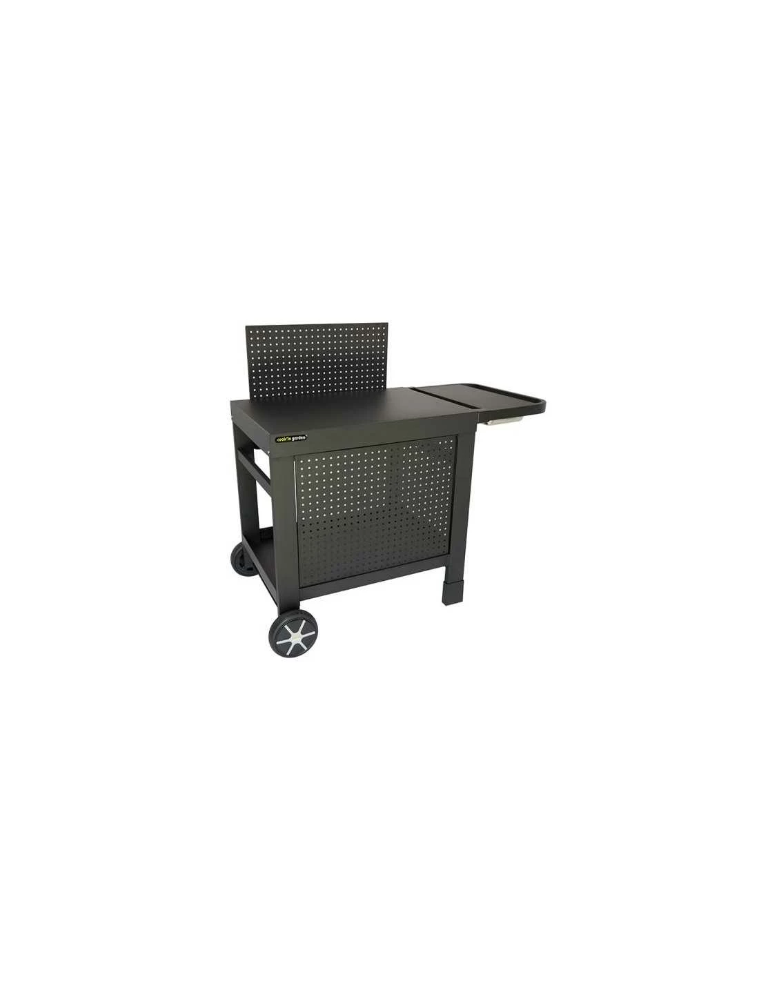 Fabriquée en acier époxy, la desserte Reva 110 Premium permet de préparer vos plats sur sa surface de travail de 108 x 55 cm ou d’installer une plancha. Des roues renforcées ainsi qu’une poignée offrent la possibilité de déplacer la desserte sans aucun effort. La desserte est équipée de nombreux accessoires.