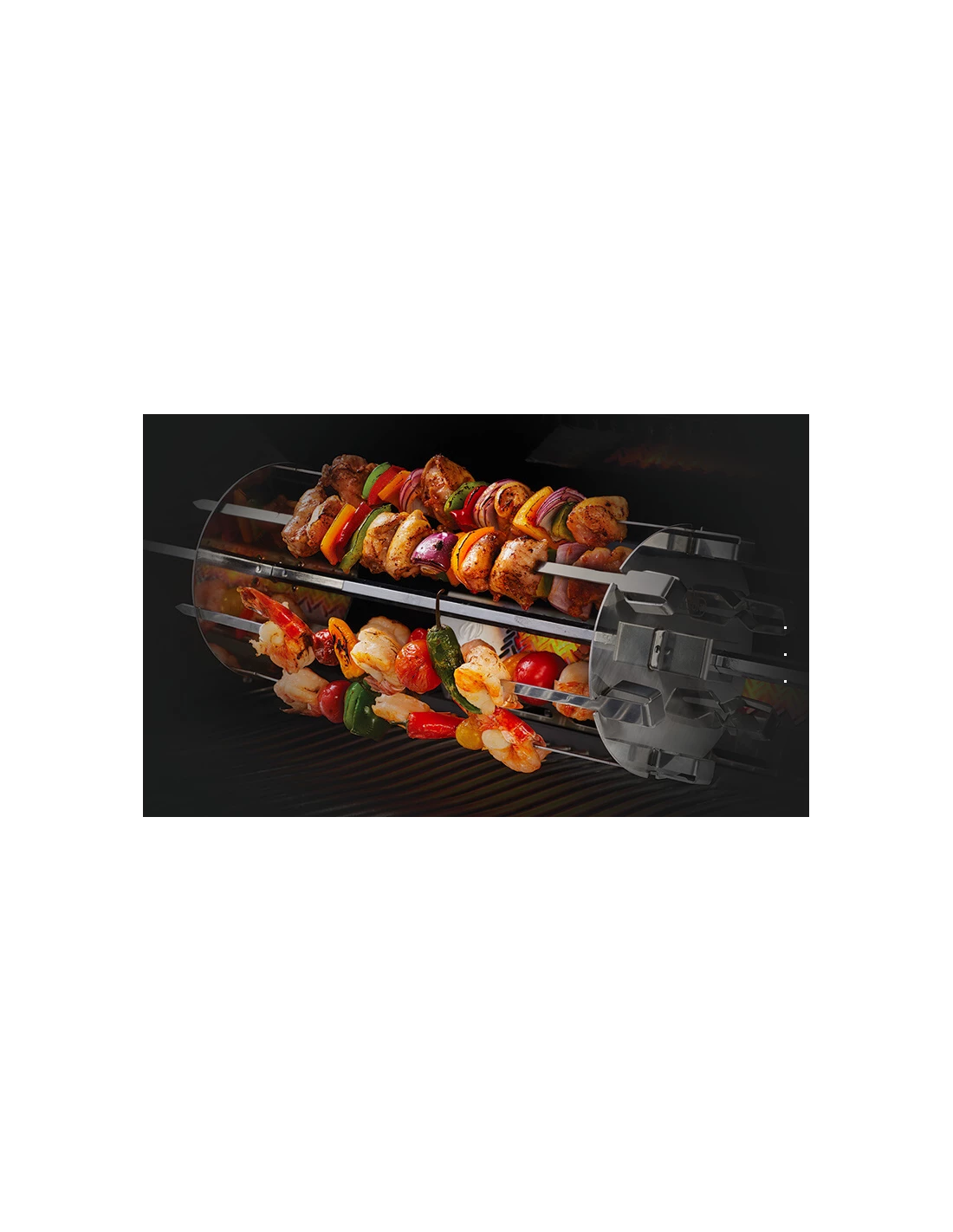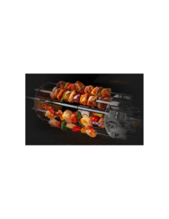 Positionnez jusqu’Ă 6 brochettes sur le support et faites les rĂ´tir, vos convives vont adorer !