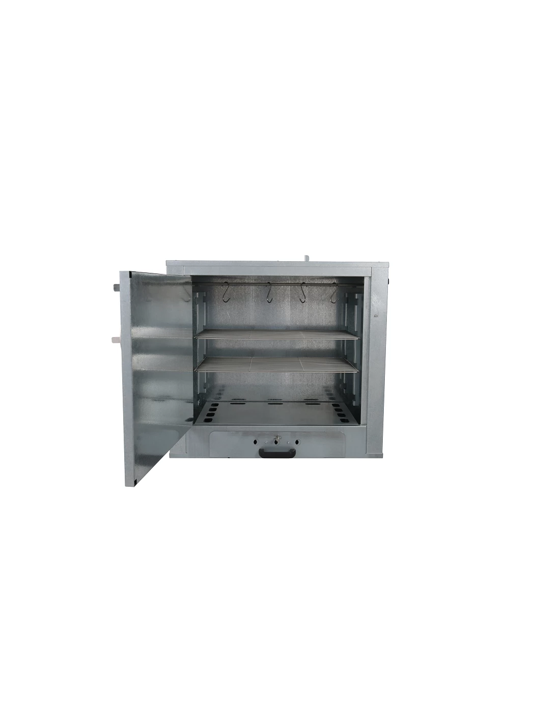 ModĂšle haut de gamme avec ses doubles parois, le modĂšle GLM-FUM-00 GalvanisĂ© (existe aussi en Inox), permettra de limiter la condensation afin d’obtenir un fumage prĂ©cis et sans risque de gouttes sur les aliments.