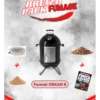 Ce fumoir, est doté de deux grilles de 50 cm de diamètre, d’un support de fumage (avec 6 crochets), d’un système d’aération qui vous permettra de gérer avec précision la température du fumoir.