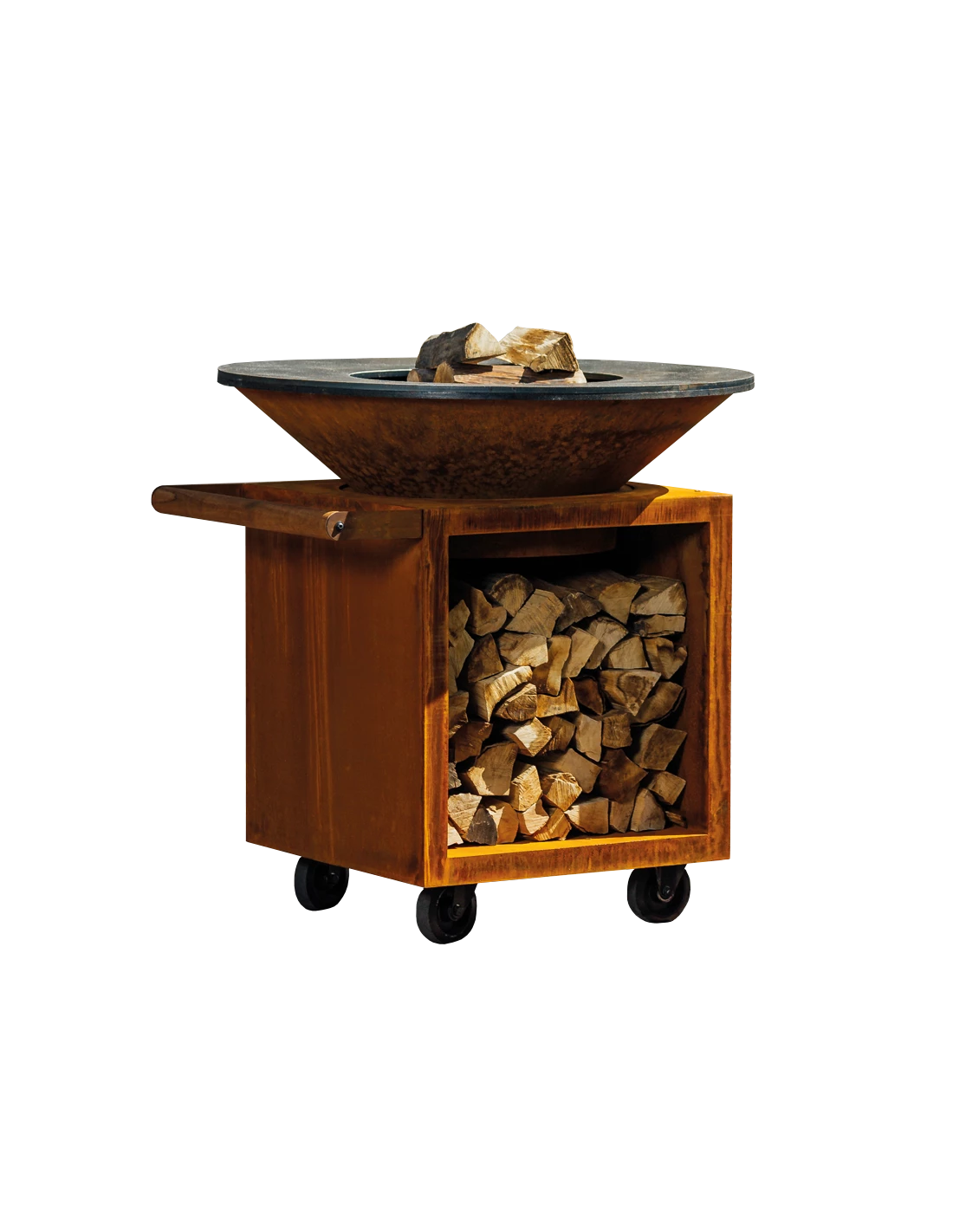 L’OFYR Classic Storage 100 PRO a toutes les caractéristiques de l’OFYR Classic Storage avec l’avantage additionnel d’une poignée et de roulettes. Vous pouvez facilement déplacer votre unité de cuisson. La poignée est fabriquée en teck. Disponible en 100 cm de diamètre en acier Corten ou en acier laqué noir.