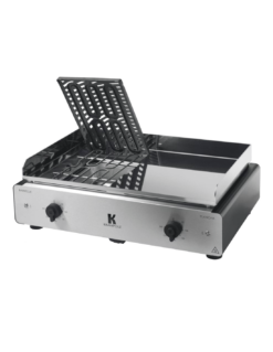 La plancha DUO K est un combiné Barbecue et Plancha électrique, le tout en Inox, par Krampouz !