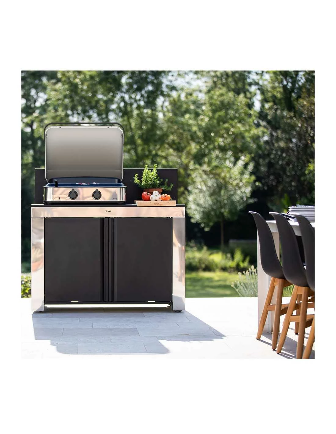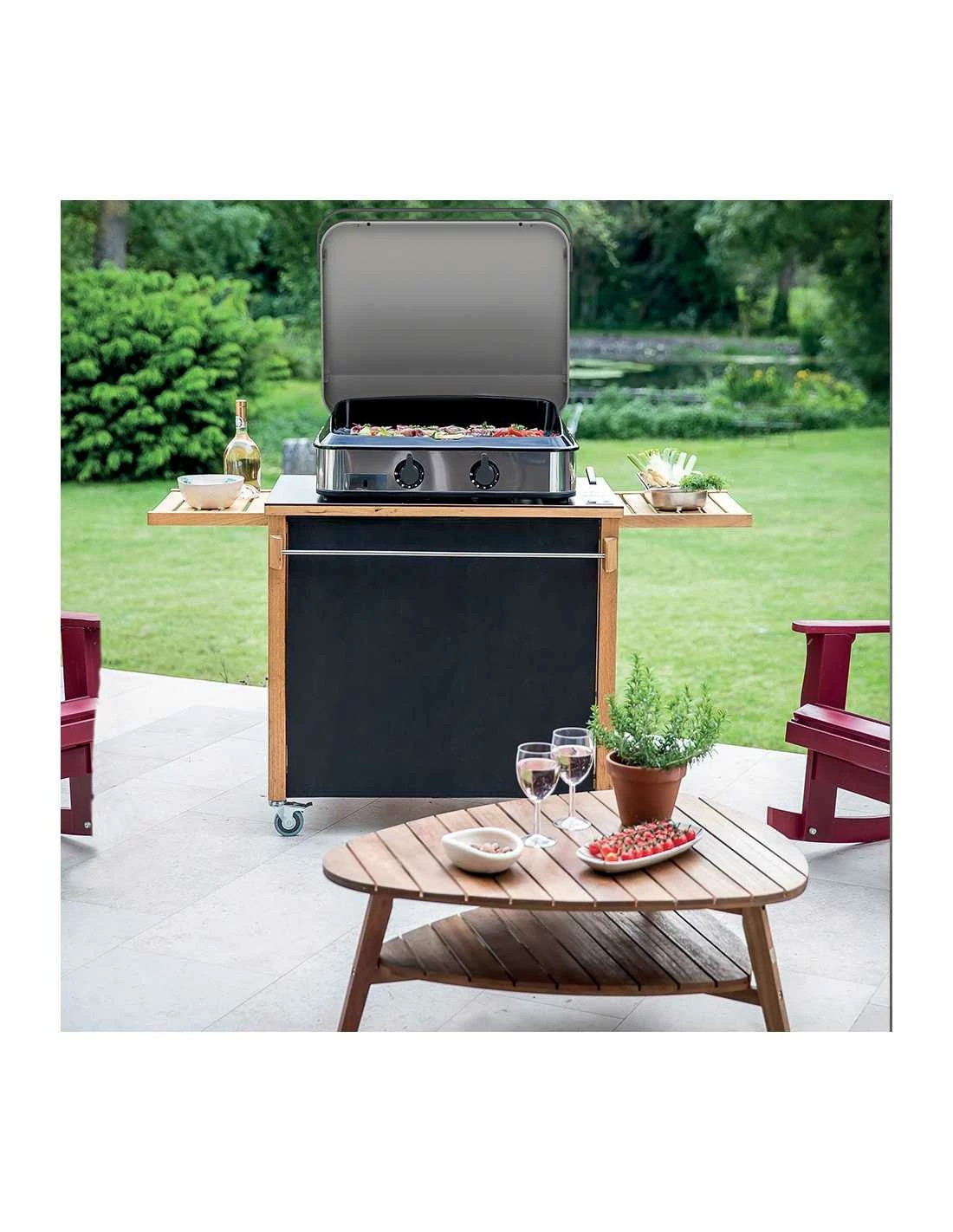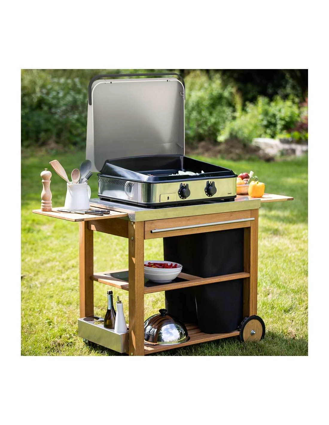 Détails : Châssis double paroi, 4 pieds réglables, tiroir récupérateur de jus en inox