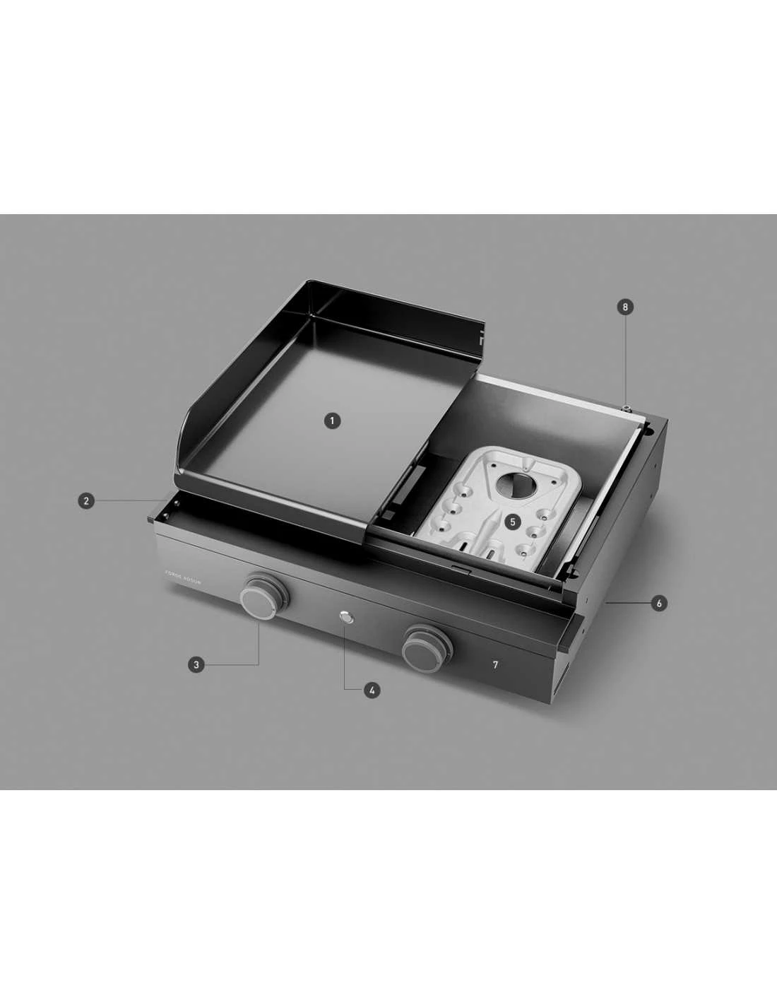 Le modĂšle ORIGIN G 60 A est pourvu d’un chĂąssis en acier peint noir mat avec revĂȘtement 3 couches, d’un bac Ă graisse intĂ©grĂ© de 1 L, de 2 manettes de rĂ©glage ainsi que de pieds stabilisateurs.Â