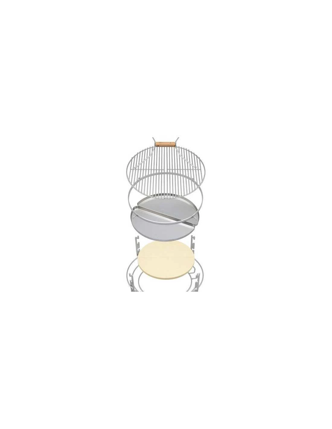 1 support en acier inoxydable avec différentes encoches qui permettent de modifier la hauteur de la grille et de combiner les surfaces de cuisson. Le cadre offre 4 réglages de hauteur selon vos besoins.