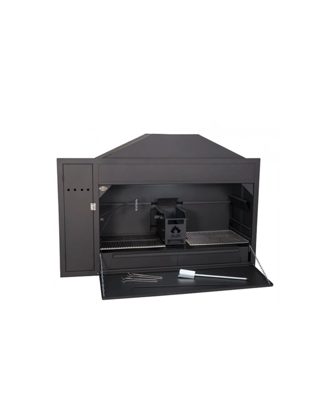 Vous aurez aussi la possibilité de varier les plaisirs en suspendant une marmite à la potence prévue à cet effet (incluse avec le barbecue) ou en utilisant un wok (option). Le compartiment avec porte situé sous le foyer principal pourra faire office de four !